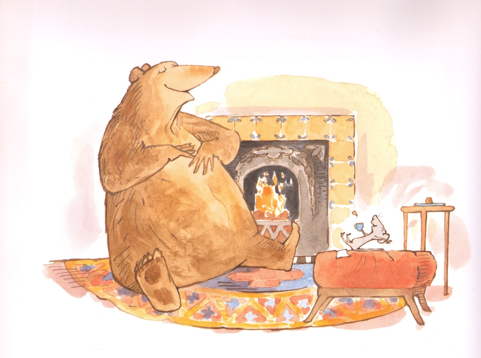 Orso, il protagonista del racconto, non ama gli ospiti e gli animali intorno a lui, ha persino appeso alla porta un cartello con scritto “Niente ospiti”. Il piccolo topolino però riesce a infilarsi nella sua casetta, a nascondersi e sorprendere il padrone di casa, ma puntualmente viene messo alla porta, finché l’orso non gli concede una tazza di tè e un po’ di formaggio con la promessa che poi il topolino avrebbe tolto il disturbo. Dapprima in silenzio e poi divertendosi, i due protagonisti passano così il tempo insieme, diventando amici.